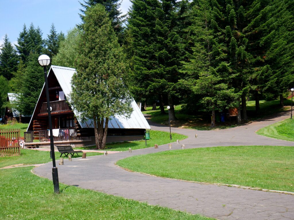 Do dyspozycji gości są zarówno domki jak i pokoje hotelowe, więc każdy znajdzie coś dla siebie. 12 drewnianych 4, 5 i 6 osobowych chatek z dwoma lub trzema sypialniami dwuosobowymi. Na parterze każdej z nich znajduje się salon z kominkiem oraz łazienka. Drewniane schodki prowadzą na poddasze, gdzie znajdziemy dwie dwuosobowe sypialnie oraz balkon. Dodatkowo w każdym z nich łazienka z pełnym węzłem sanitarnym (WC, prysznic, umywalka), telewizja kablowa, radio, telefon, lodówka, czajnik elektryczny i podstawowe nakrycia stołowe. Chatki są centralnie ogrzewane i czynne są przez cały rok.